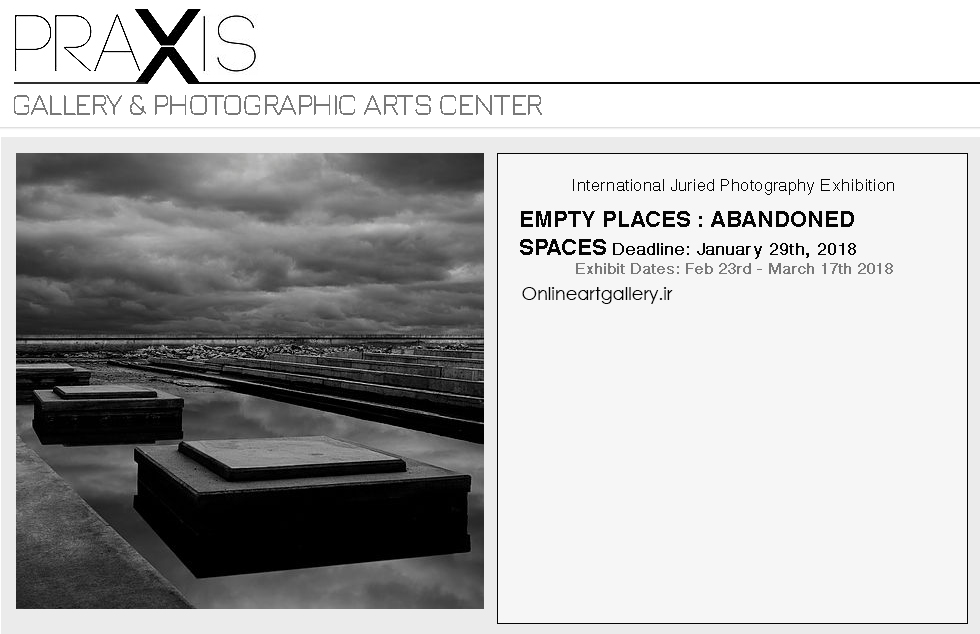 به گزارش گالري آنلاين، آثار منتخب 17 فوريه – 17 مارس 2018 در گالري Praxis به نمايش در خواهد آمد.