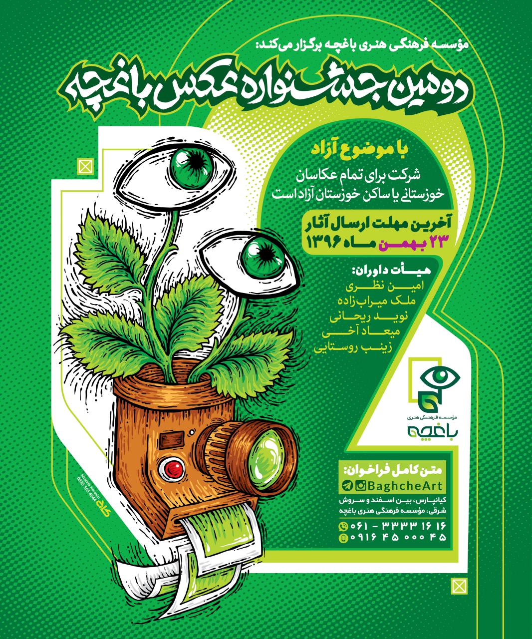 به گزارش گالري آنلاين به نقل از روابط عمومي جشنواره، موسسه فرهنگي هنري باغچه به منظور معرفياستعدادهاي عکاسي در ميان دانشجويان، هنرجويان و فارغ التحصيلان اين رشته در خوزستان و به نمايش گذاشتن عکس هاي برتري که توسط اين افراد ثبت شده است فراخوان دومين جشنواره عکس باغچه را منتشر مي کند.