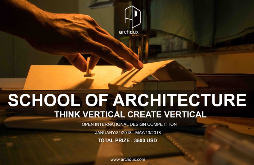 مسابقه‌ي بين‌المللي مدرسه معماري از معماران، طراحان و دانشجويان دعوت مي‌کند تا با يک داستان خيالي، يادگيري معماري را به مشتقات عمودي ساختمان بسپارند.