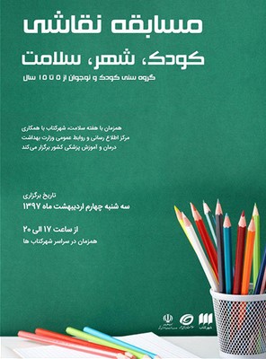 به گزارش گالري آنلاين به نقل از ايلنا، همزمان با هفته سلامت «موسسه شهر کتاب» با همکاري مرکز اطلاع رساني و روابط عمومي وزارت بهداشت، مسابقه نقاشي «شهر، کودک، سلامت» را براي کودکان و نوجوانان ۵ تا ۱۵سال با هدف آشنايي و تشويق حفظ سلامتي برگزار ميکند.