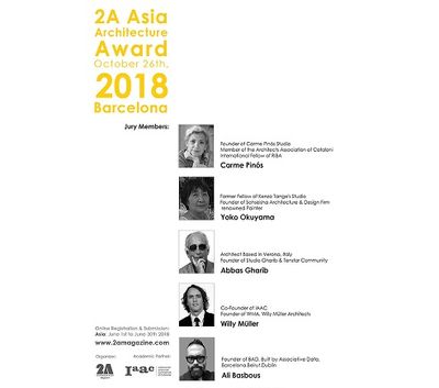 چهارمين دوره جايزه معماري آسيايي ۲A سال ۲۰۱۸ با موضوع "Innovative Contextual Architecture"، "معماري منظر نوآورانه" برگزار ميشود.