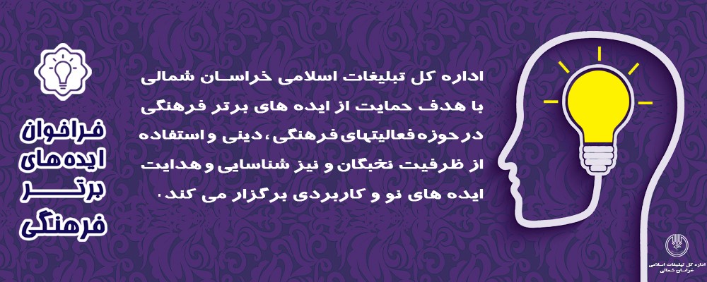 به گزارش گالري آنلاين به نقل از روابط عمومي اداره کل تبليغات اسلامي خراسان شمالي، حجتالاسلام علي خادمي مديرکل تبليغات اسلامي استان هدف از اين طرح را حمايت از ايده هاي برتر فرهنگي در حوزه فعاليت هاي فرهنگي، ديني و استفاده از ظرفيت نخبگان فرهنگي در برنامه ريزي هاي فرهنگي و اجتماعي و نيز شناسايي و هدايت ايده هاي نو و کاربردي عنوان کرد.