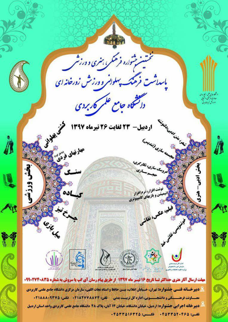 شايان ذکر است، نخستين جشنواره فرهنگي، هنري و ورزشي پاسداشت فرهنگ پهلواني و ورزش زورخانه‌اي دانشگاه جامع علمي کاربردي در دو بخش ورزشي و ادبي هنري از ٢٣ تا ٢۶ تيرماه ۱٣٩٧ به ميزباني دانشگاه جامع علمي کاربردي استان اردبيل به کوشش اداره کل تربيت بدني دانشگاه جامع علمي کاربردي کشور با همکاري اداره کل تربيت بدني سازمان امور دانشجويان وزارت علوم، تحقيقات و فناوري، فدراسيون ملي ورزش‌هاي دانشگاهي، هيات کشتي استان اردبيل، هيات پهلواني و زورخانه‌اي استان اردبيل و بنياد فردوسي برگزار خواهد شد.