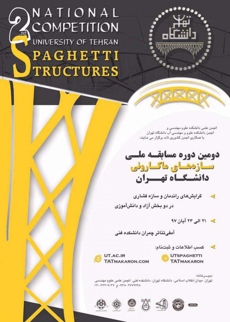 دومين دوره مسابقات ملي سازههاي ماکاروني دانشگاه تهران به همت انجمنهاي علمي دانشجويي علوم مهندسي و مهندسي آب از ۲۱ تا ۲۳ آبان ۱۳۹۷ در دانشکده فني دانشگاه تهران برگزار خواهد شد.