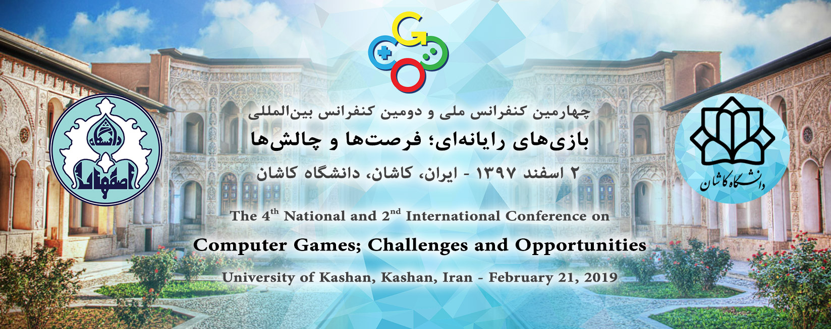 چهارمين کنفرانس ملّي و دومين کنفرانس بينالمللي «بازيهاي رايانهاي؛ فرصتها و چالشها» به ميزباني دانشگاه کاشان در تاريخ ۲ اسفند ۱۳۹۷ برگزار ميگردد.