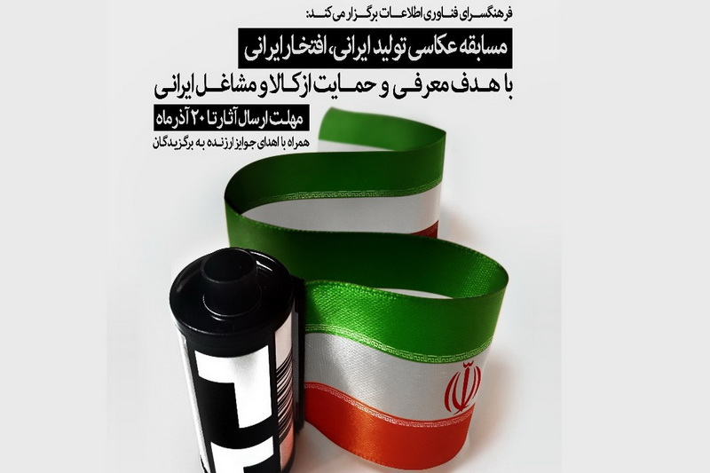 فرهنگسراي فناوري اطلاعات مسابقه عکاسي «توليد ايراني، افتخار ايراني» را با هدف معرفي و حمايت از مشاغل و کالاهاي ايراني در سه محور مشاغل سنتي، مشاغل خانگي و مشاغل نو آورانه برگزار مي کند.