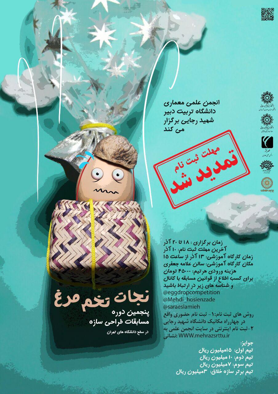 انجمن علمي معماري مهراز دانشگاه تربيت دبير شهيد رجايي پنجمين دوره مسابقه طراحي سازه‌ي نجات تخم مرغ دانشگاه هاي تهران را برگزار مي نمايد.