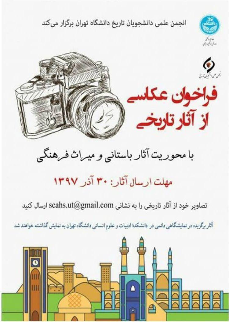 انجمن علمي دانشجويان تاريخ دانشگاه تهران فراخواني جهت عکاسي از آثار تاريخي با محوريت آثار باستاني و ميراث فرهنگي را اعلام نموده است.