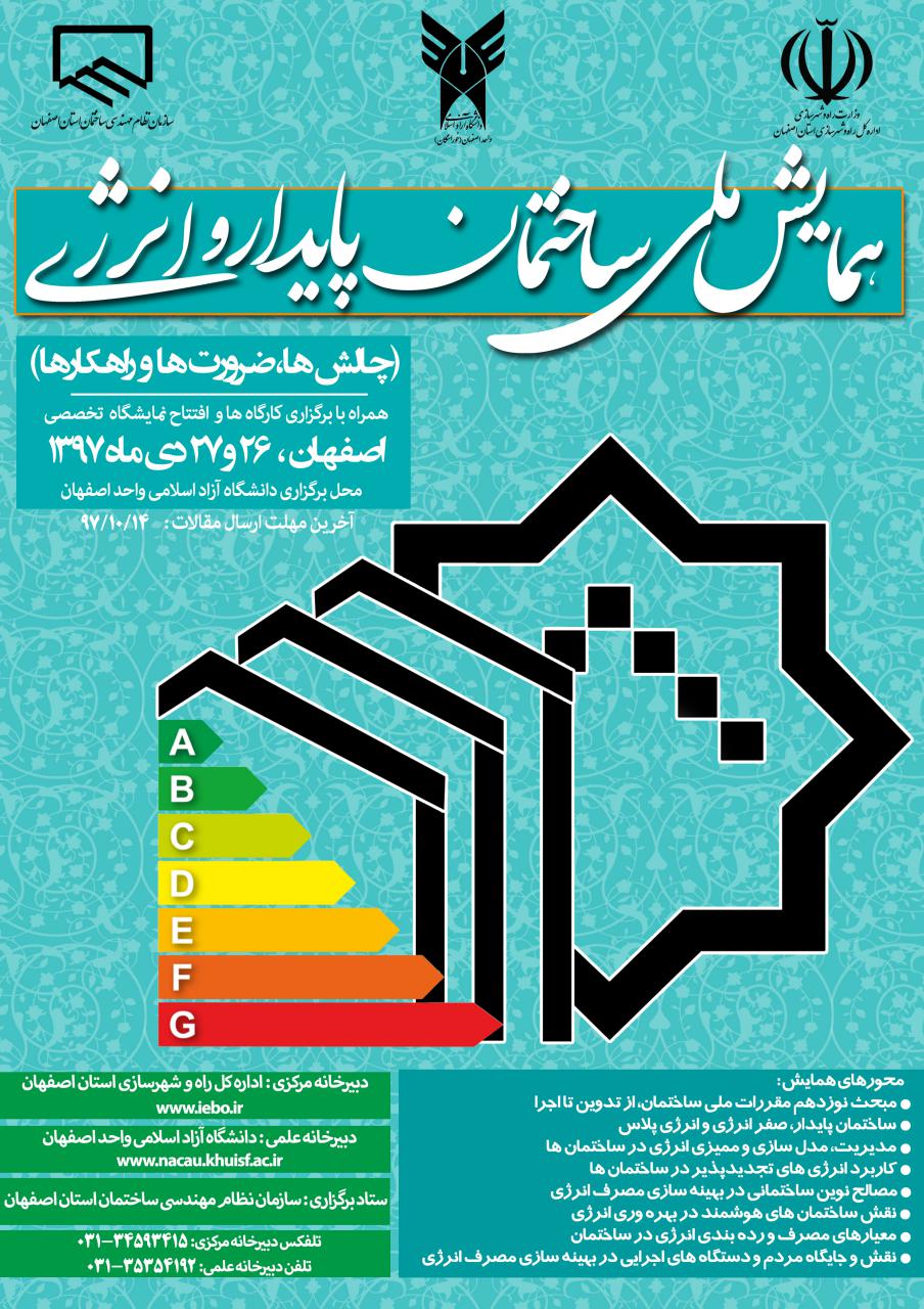 همايش ملي ساختمان پايدار و انرژي (چالش ها، ضرورت ها و راهکارها) همراه با برگزاري کارگاه ها و افتتاح نمايشگاه تخصصي 26 و 27 دي ماه در دانشگاه آزاد اسلامي اصفهان برگزار مي شود.