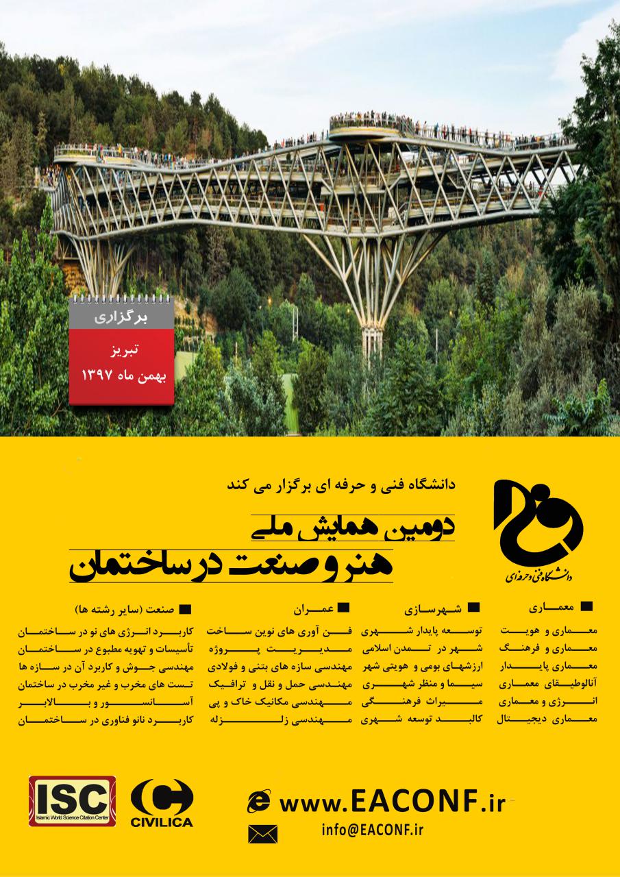 - 2.عمران: فن آوري هاي نوين ساخت- مديريت پروژه- مهندسي سازه هاي بتني و فولادي- مهندسي حمل و نقل و ترافيک- مهندسي مکانيک خاک و پي- پست- مهندسي سازه- مهندسي زلزله- مهندسي ژئوتکنيک- تکنولوژي عالي بتن- مديريت ساخت و اجرا- تاسيسات سبز و ساختمان سبز- آموزش و توسعه مهندسي عمران- مهندسي راه، حمل و نقل و ترافيک- نقشه برداري، ژئودزي، ژئوماتيک- مديريت هوشمند تاسيسات ساختمان- فن آوري هاي نو در مهندسي عمران- مهندسي محيط زيست و توسعه پايدار- سيستم هاي توليد، توزيع و انتفال انرژي- ايمني، مديريت بحران و پدافند غير عامل- مديريت و بهينه سازي انرژي در ساختمان
