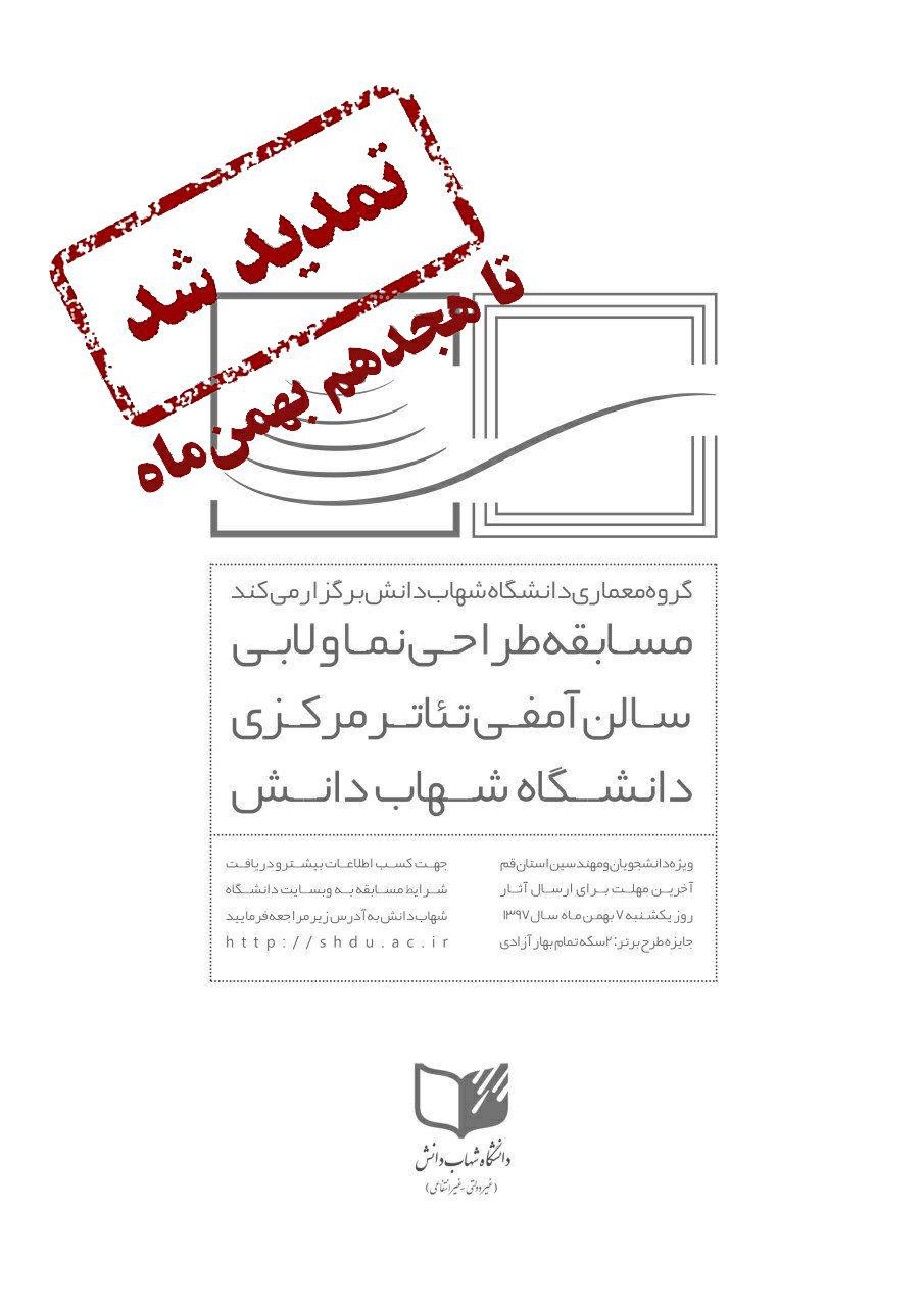 اطلاعات تکميلي و اسناد مسابقه را از طريق وب سايت دانشگاه شهاب دانش به آدرس http://Shdu.ac.ir و کانال تلگرامي @SDUDesign قابل دريافت است.