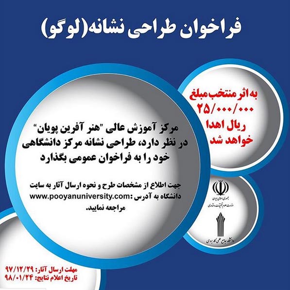 مركز دانشگاهي "هنر آفرين پويان" واقع در شهر سمنان در نظر دارد، طراحى نشان مركز دانشگاهى خود را به فراخوان عمومى بگذارد.