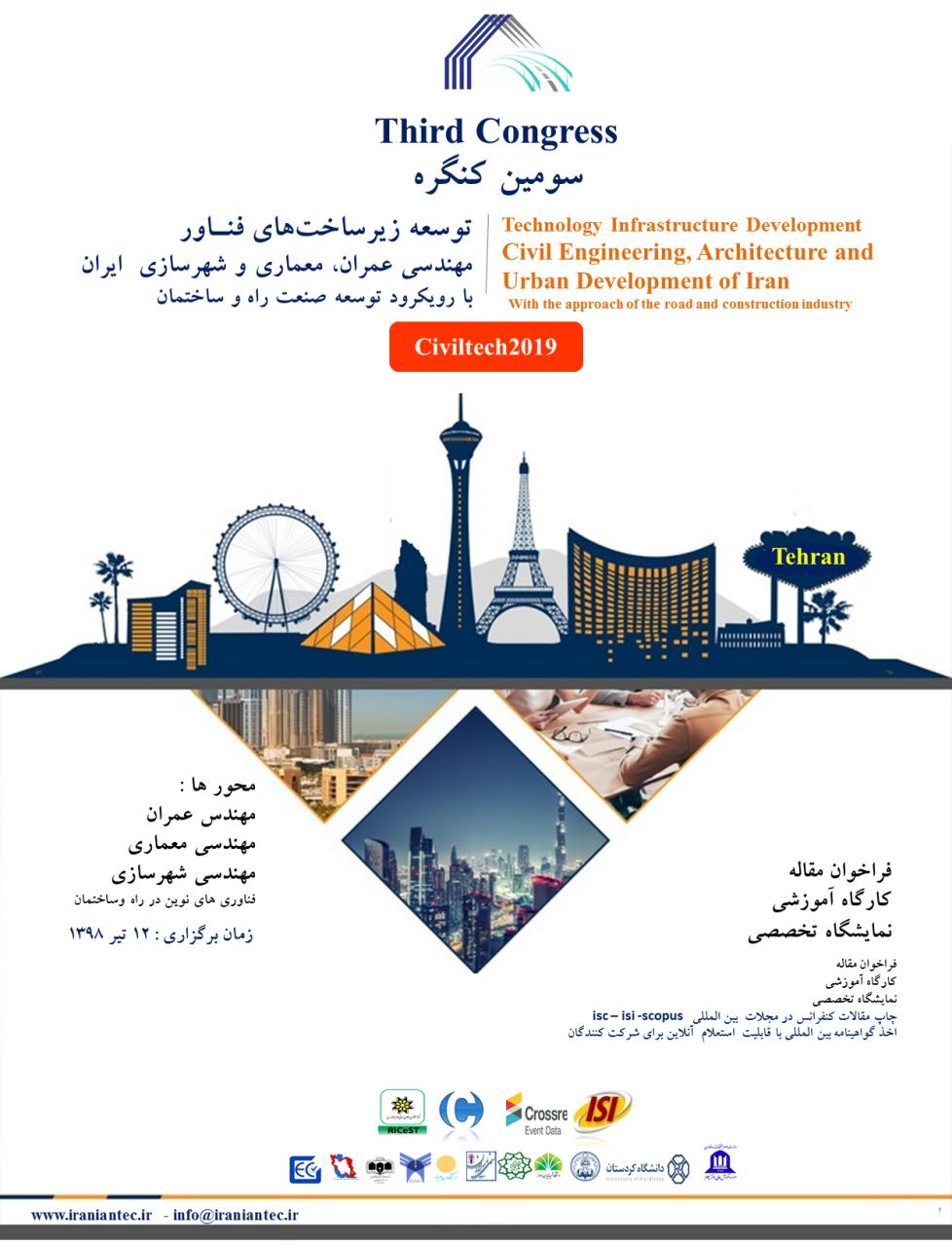 سومين کنگره توسعه زيرساختهاي فناور مهندسي عمران، معماري و شهرسازي ايران با اهداف ترويج و توسعه فرهنگ پژوهش و فن آفريني، خلاقيت و نوآوري، معرفي پژوهشگران و فن آفرينان و مهندسان برگزيده به عنوان موتور محرکه و توسعه اقتصادي، ايجاد فضاي تعامل در ميان فعالان عرصه هاي مختلف علمي پژوهشي و فن آفريني و تسهيل فرآيند شناسايي و انتخاب ايده هاي برتر و فناور به منظور دستيابي به ايدههاي ناب و اجرايي در بهبود فضاي صنعت ساخت در كشور در راستا تحقق برنامه هاي علمي کشور توسط دبيرخانه دائمي کنگره در شهر تهران برگزار خواهد شد.