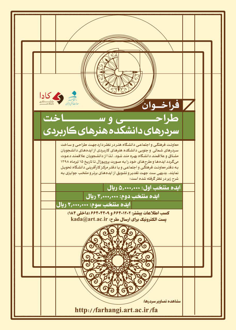 فراخوان طراحي سردرهاي دانشکده هنرهاي کاربردي در معاونت فرهنگي دانشگاه هنر