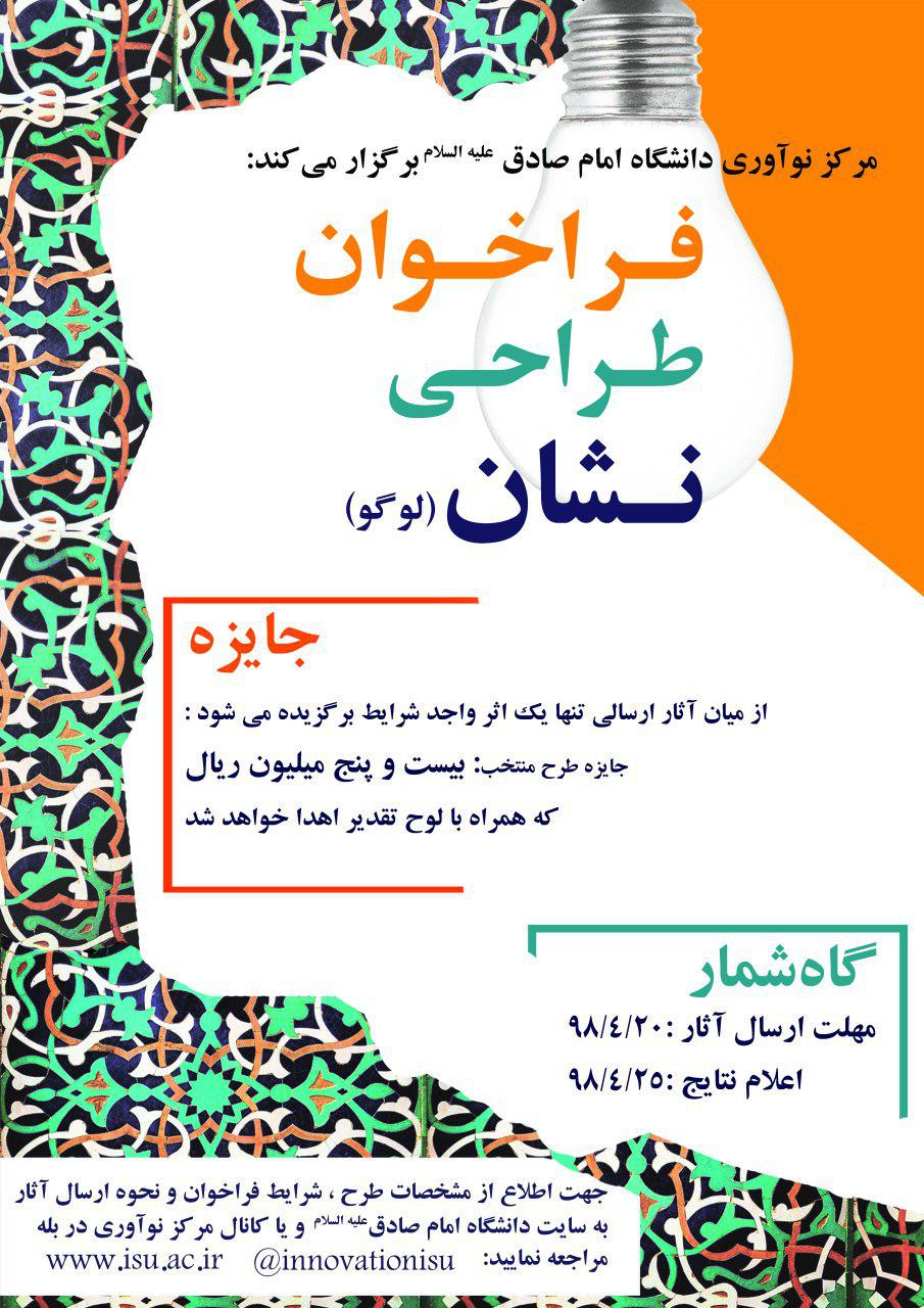مرکز نوآوري دانشگاه امام صادق عليهالسلام در نظر دارد طراحي نشان (لوگوي) خود را از طريق فراخوان طراحان انجام دهد.