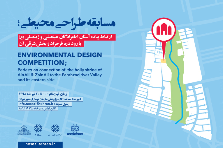 آستان امامزادگان عينعلي و زينعلي (ع) در شهر تهران و در منطقه دو شهرداري واقع شده است. عبور روددره فرحزاد از کنار اين مکان سبب شده تا اهميت توجه به ارتقاء کيفيت محدوده دو چندان گردد. در همين راستا محدودههايي تحت عنوان "حوزه نفوذ"، "حوزه بلافصل" و "محدوده مداخله مستقيم" تعيين شده است که به فراخور هر محدوده شرکتکنندگان لازم است شناخت، تحليل و يا طرحها و ايدههاي خود را در اين محدوده ها ارائه دهند، تا با توجه به ويژگيهاي کالبدي، اجتماعي، ترافيکي و محيطي حاکم، بتوان ايده هايي در راستاي بهبود سطح کيفي و ارتقاء هويتي را اتخاذ نمود.