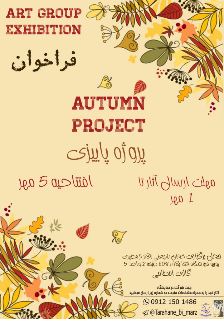 رويداد هنري پروژه ي پاييزي توسط گروه هنري طراحان بي مرز همزمان بافرارسيدن فصل پاييز و با هدف حمايت، شناسايي و کشف هنرمندان جوان و معاصر برگزار خواهد شد.