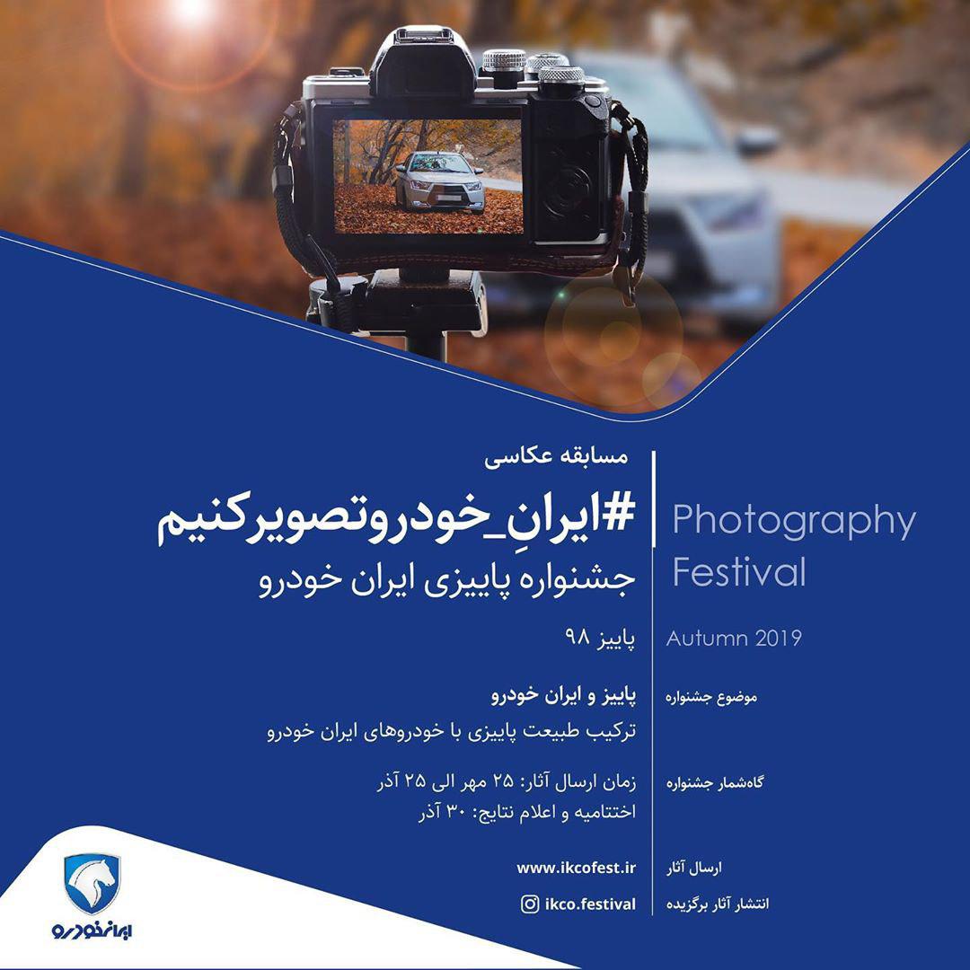 در اين جشنواره ميتوانيد با ترکيب طبيعت پاييزي و محصولات ايران خودرو، تصاويري رنگي يا سياه و سفيد تهيه و در مسابقه شرکت کنيد.