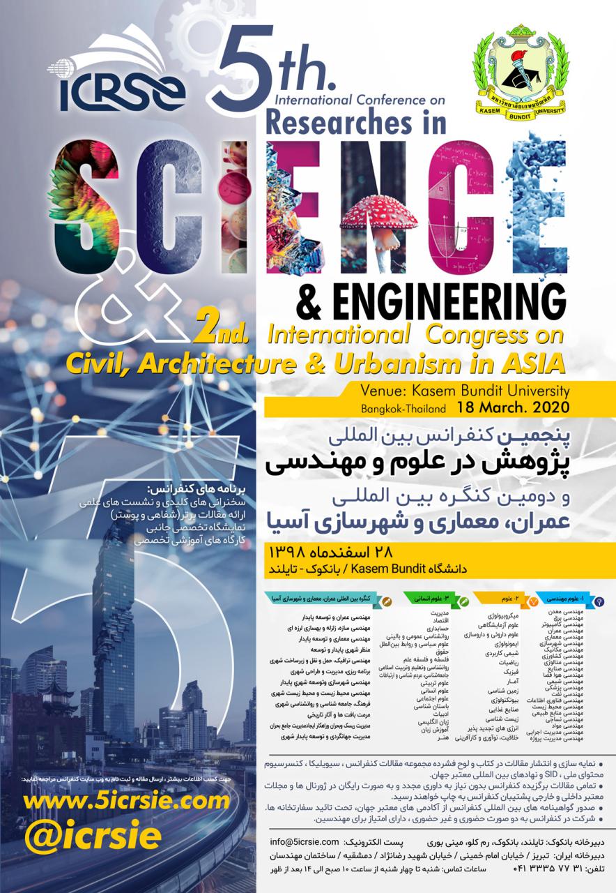 از اين رو برگزاري پنجمين کنفرانس بين المللي پژوهش در علوم و مهندسي و دومين کنگره بين المللي عمران، معماري و شهرسازي آسيا در دانشگاه Kasem Bundit بانکوک در راستاي برگزاري موفق دوره قبلي کنفرانس در اين دانشگاه معتبر کشور تايلند و بازتاب بسيار گسترده آن و با بهره گيري از تجارب گذشته، اساتيد بزرگوار دانشگاه هاي معتبر بانکوک و جهان و نهادهاي علمي پژوهشي فرصتي مناسب جهت تبادل اطلاعات و ارائه ي يافته هاي پژوهشي نوين و گردهم آوردن صاحب نظران، انديشمندان، دانشگاهيان، سياستگزاران و مديران، سازمانهاي ذي ربط و علاقه مند، مهندسين مشاور و متخصصان و علاقه مندان مباحث مهندسي ،علوم و علوم انساني، عمران، معماري و شهرسازي مي باشد. برگزاري اين کنفرانس و کنگره امكان تبادل نظر و ايجاد ارتباط علمي با دانشگاه ها ومراكزتخصصي کشور و جهان درزمينه مفاهيم مشترك علوم، مهندسي، عمران، معماري، شهرسازي و سايرموضوعات مرتبط با محورهاي کنفرانس و کنگره را فراهم مي سازد.