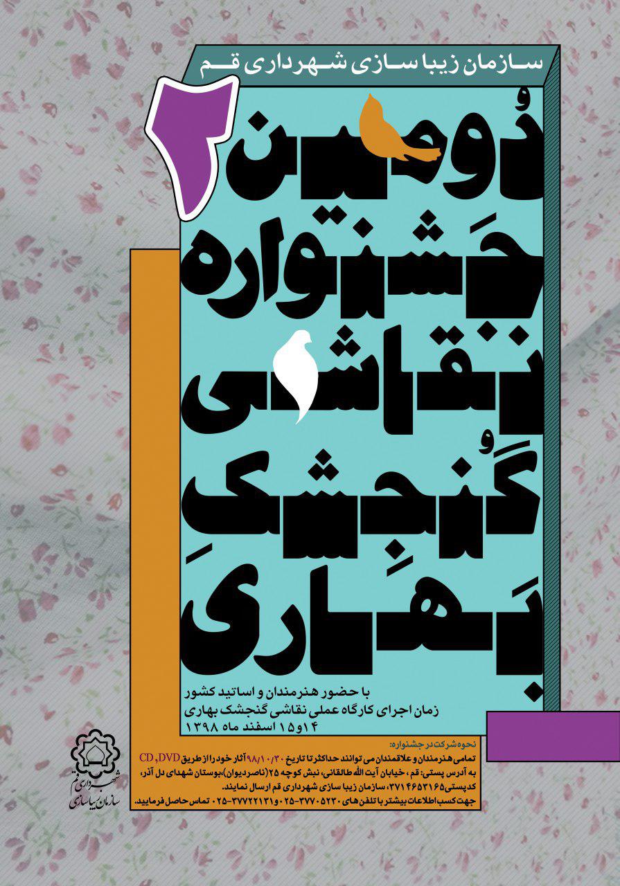 سازمان زيباسازي شهر قم در نظر دارد، در راستاي فراخوان رويداد شهرنگار 3 (نوروز 99) و با هدف افزايش نشاط در سطح شهر و فراهم نمودن زمينه ايده پردازي و خلق تجربه هاي جديد رنگي در منظر شهري، با مشارکت و تعامل هنرمندان فراخوان "جشنواره نقاشي گنجشک هاي بهاري "را برگزار مي نمايد.