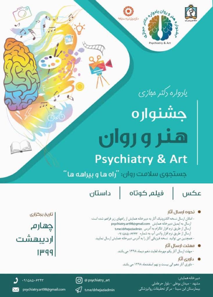 اولين دوره جشنواره هنر و روان با هدف انگزدايي از بيماران اعصاب و روان در سه حوزه داستان کوتاه، عکس و فيلم کوتاه به همت دانشگاه علوم پزشکي مشهد، دانشکده پزشکي، گروه روانپزشکي برگزار ميشود.