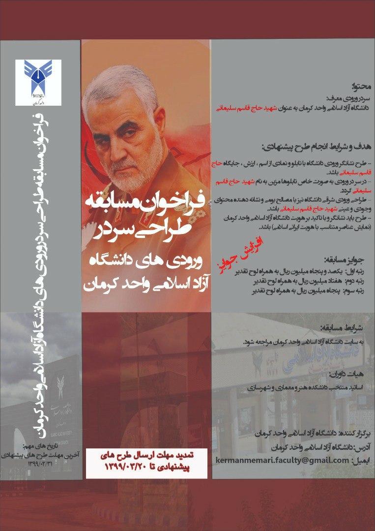 رئيس دانشکده هنر، معماري و شهرسازي دانشگاه آزاد اسلامي واحد کرمان گفت: در طراحي سردر اين واحد دانشگاهي بايد نماد علم، دانشگاه، و نمادهايي از شخصيت شهيد سردار سليماني متبلور باشد.