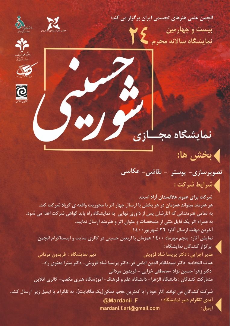 بيست و چهارمين نمايشگاه سالانه محرم با عنوان شور حسيني توسط انجمن علمي هنرهاي تجسمي ايران برگزار مي شود.