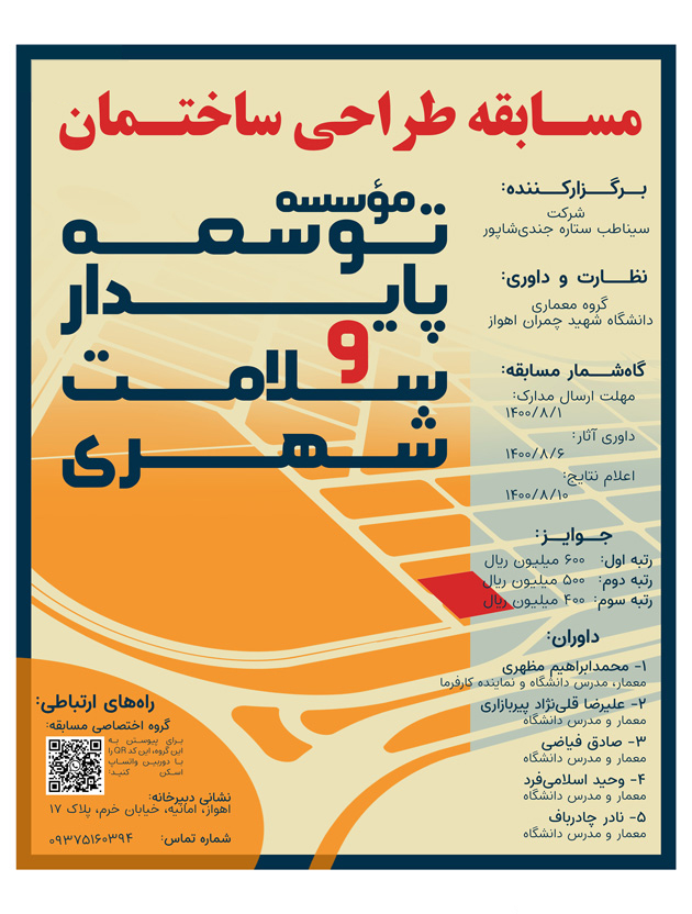 ﻋﻨﻮان اﻳﻤﻴﻞ ارﺳﺎﻟﻲ: ﻃﺮح ﻣﺴﺎﺑﻘﻪ ﻣﻌﻤﺎري ﺳﺎﺧﺘﻤﺎن ﻣﻮﺳﺴﻪ ﺗﻮﺳﻌﻪ ﭘﺎﻳﺪار و ﺳﻼﻣﺖ ﺷﻬﺮي.