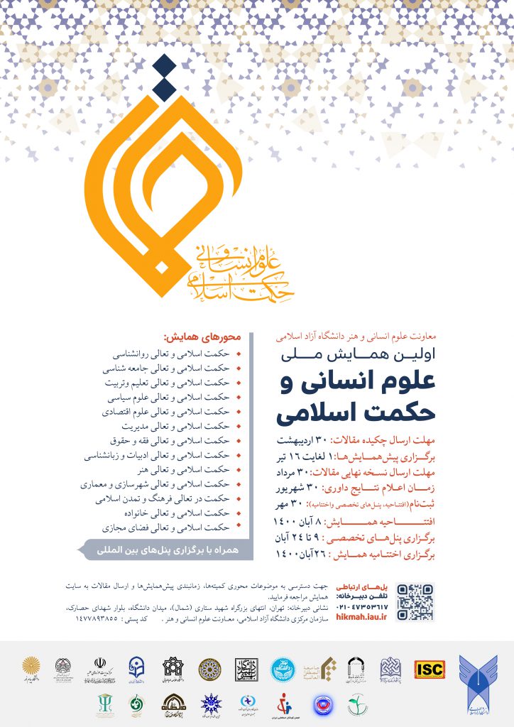 معاونت علوم انساني و هنر دانشگاه آزاد اسلامي، اولين همايش ملي علوم انساني و حکمت اسلامي را برگزار مي نمايند.