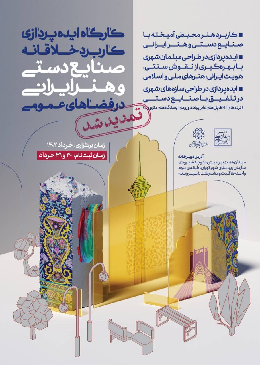سازمان زيباسازي شهر تهران در راستاي تحقق اهداف و مأموريتهاي سازماني خود با همکاري معاونت صنايع دستي وزارت ميراث فرهنگي اقدام به برگزاري کارگاه ايده پردازي کاربرد خلاقانه صنايع دستي در فضاهاي عمومي شهر تهران نموده است.