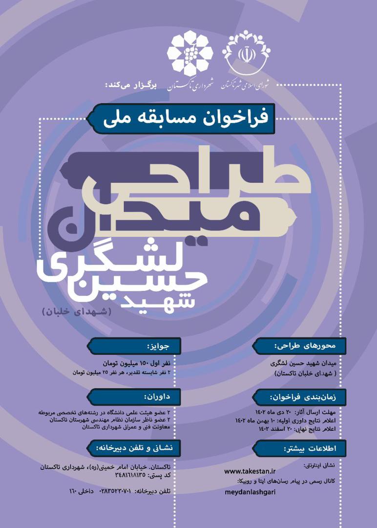 جهت کسب اطلاعات بيشتر به کانال تلگرام مسابقه (https://t.me/meydanlashgari) مراجعه نماييد.