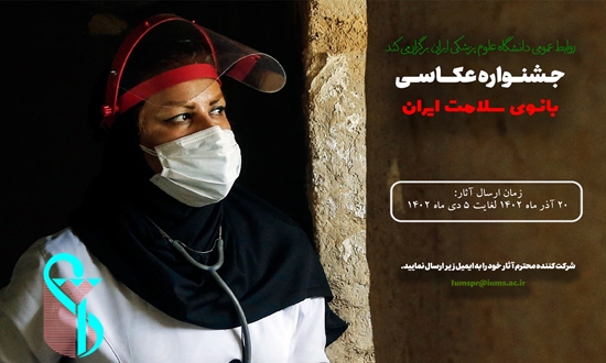 جشنواره عکاسي بانوي سلامت ايران همزمان با همايش روز زن به همت روابط عمومي دانشگاه علوم پزشکي ايران در مرکز همايشهاي بين المللي رازي برگزار ميشود.