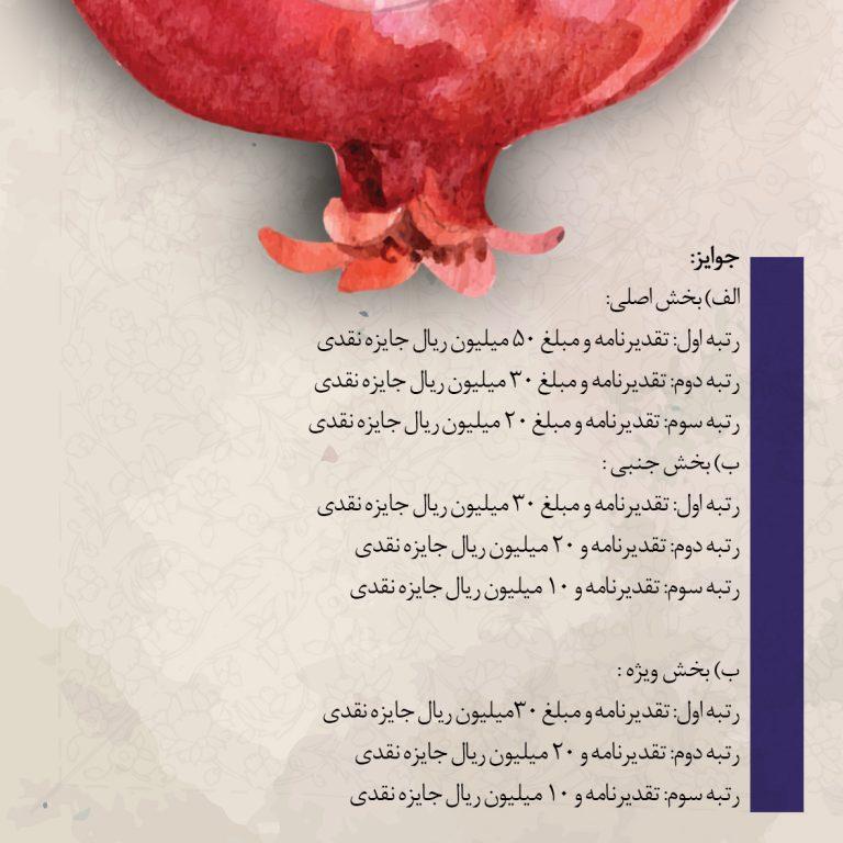 او تصريح کرد: علاقه‌مندان مي‌توانند در هر سه بخش شرکت کنند و مهلت ارسال آثار تا ۱۵ دي ماه ۱۴۰۲ است و شرکت‌کنندگان مي‌توانند آثار خود را در پيام‌رسان‌هاي ايتا، روبيکا، واتساپ و تلگرام از طريق شماره ۰۹۲۰۴۰۹۴۴۰۴ ارسال کنند.