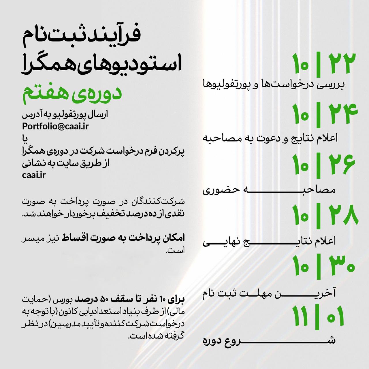 جهت پذيرش، ابتدا فرمهاي درخواست* يا پورتفوليوهاي ارسالي بررسي و در صورت کسب حد نصاب لازم، شرکتکنندگان به مصاحبه دعوت خواهند شد.