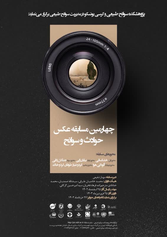 چهارمين دوره مسابقه عکس سوانح و حوادث با موضوع خشکسالي، بيابان زايي، جنگل زدايي، آلودگي هوا، گرد و غبار در دو بخش تک عکس و مقايسه اي برگزار مي شود.