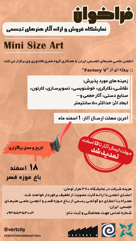 انجمن علمي هنرهاي تجسمي ايران با همکاري گروه هنري فکتوري وي برگزار مي کند.
