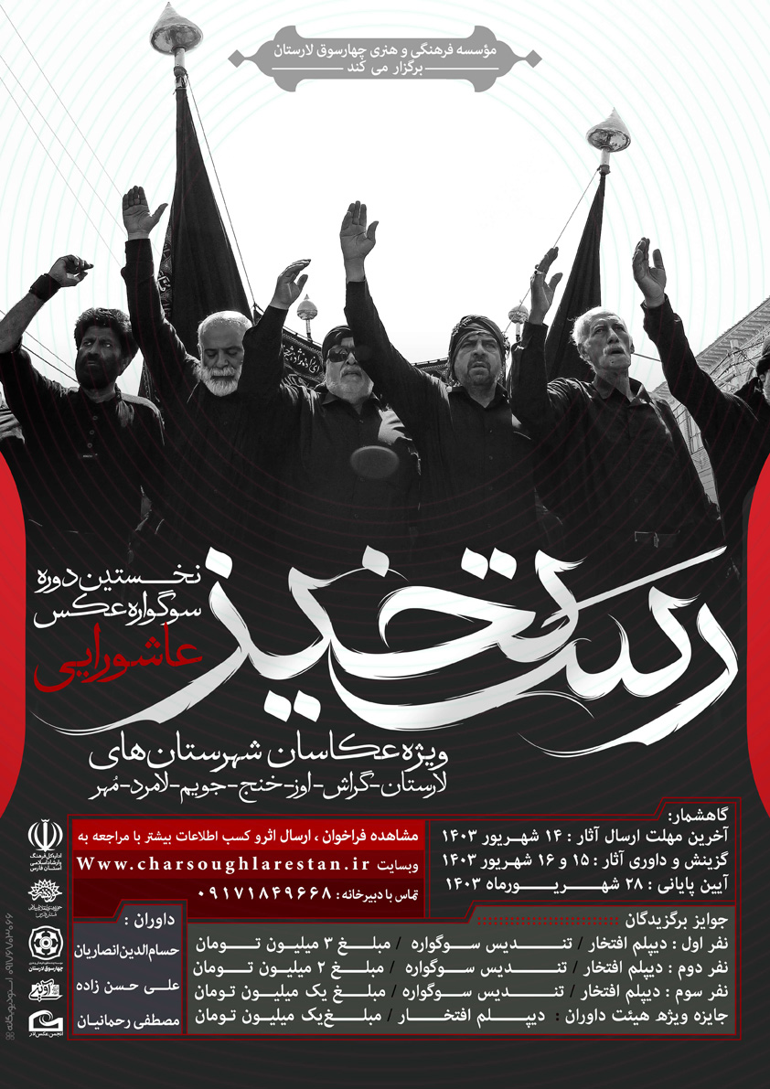 نخستين سوگواره عکس عاشورايي رستخيز ويژه عکاسان جنوب استان فارس (شهرستان هاي لارستان، گراش، اوز، خنج، جويم، لامرد، مُهر و توابع آنها) برگزار خواهد شد. اين رويداد به همت موسسه چهارسوق لارستان و با همکاري حوزه هنري استان فارس، اداره کل فرهنگ و ارشاد اسلامي استان فارس، اداره فرهنگ و ارشاد اسلامي لارستان و انجمن عکس لار برگزار مي گردد.
