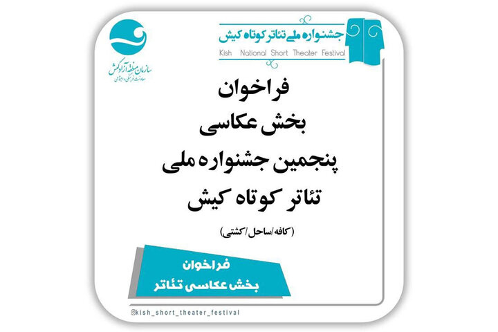 به گزارش گالري آنلاين به نقل از مهر به نقل از روابط عمومي، فراخوان بخش عکس پنجمين جشنواره ملي تئاتر کوتاه کيش منتشر شد و اين بخش بهصورت رقابتي برگزار ميشود. عکاسي تئاتر با ثبت لحظات هنر زنده نمايش در جشنواره ملي تئاتر کوتاه کيش از اهميت زيادي برخوردار است تا با نگاه ويژه و تخصصي به اين مهم، حمايت و اعتلاي تئاتر و عکاسي را در پيوندي نوظهور مورد هدف قرار دهد.