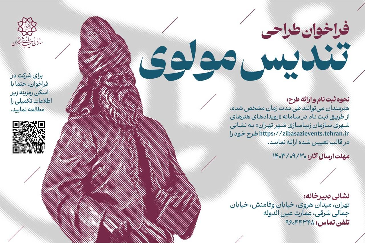 در راستاي بزرگداشت مفاخر ايران، سازمان زيباسازي شهر تهران درنظر دارد نسبت به طراحي و ساخت تنديس «مولوي» اقدام نمايد. لازم به ذکر است در اين فراخوان نقش مولانا در پيوند ملت ها، ارتقاي شعر و ادب پارسي و معنويت مورد تأکيد است.