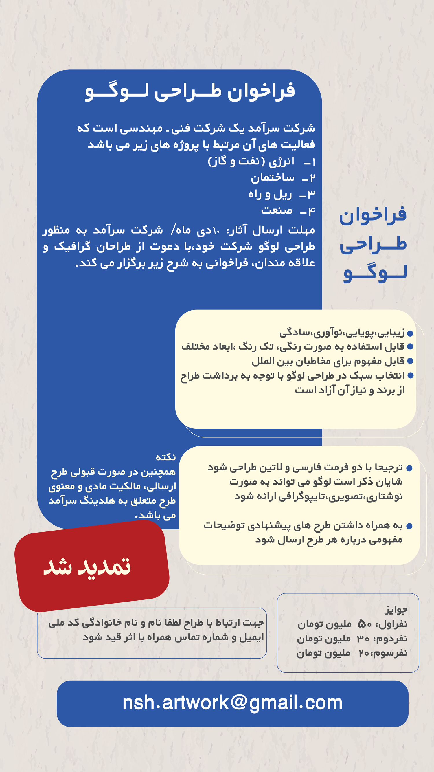 شرکت سرآمد به منظور طراحي لوگو شرکت خود، با دعوت از طراحان گرافيک و علاقه مندان، فراخواني به شرح زير برگزار مي کند.