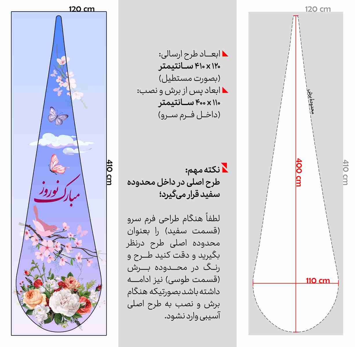 ابعاد پس از برش (طرح اصلي که در داخل محدوده سفيد قرار ميگيرد): 11*40 سانتيمتر يک دهم ابعاد واقعي