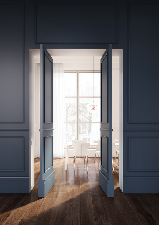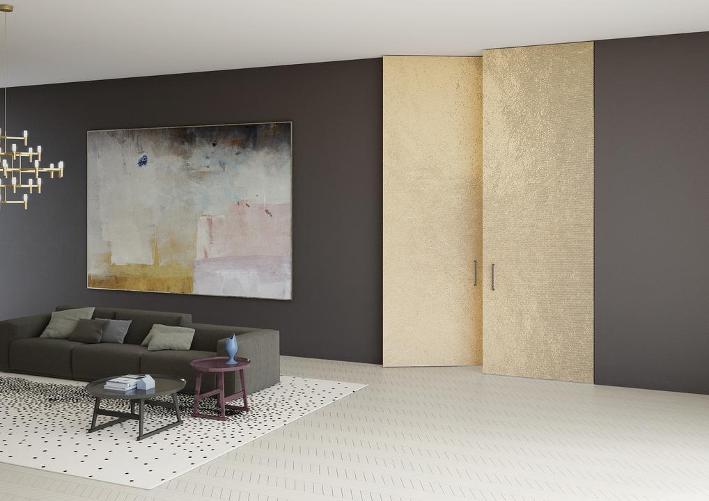 Even a small detail can create a big disparity in terms of sophistication and elegance. The panels, carefully designed and equipped with boiserie and skirting systems merge completely with the wall and can be transformed in a variety of different forms: either an entertaining entrance with a 360 degree pivoting panel, a wall-like panel finished in the same material of the wall, a glass sliding system that is not only a door but also a separator, and many other features.