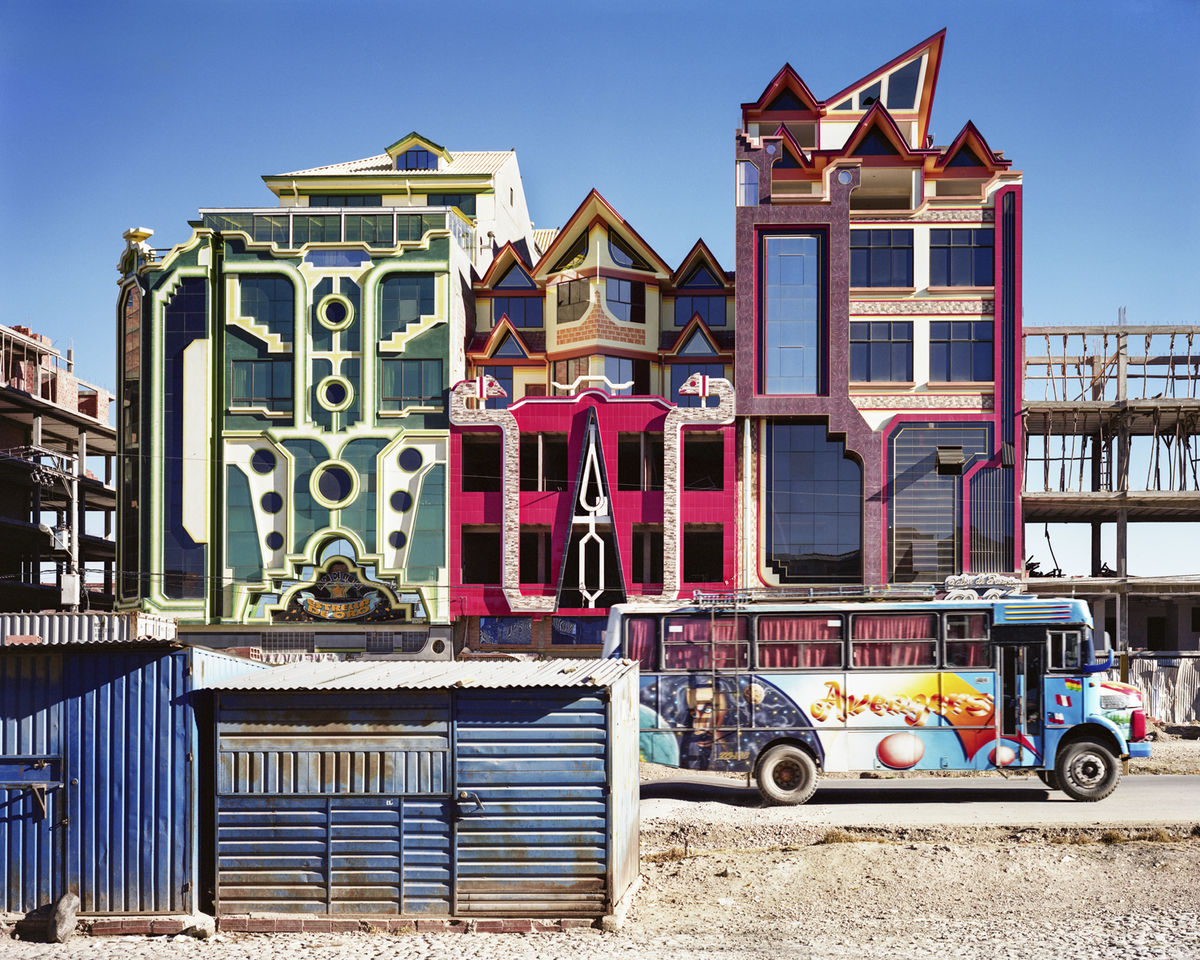 artsy_On a sprawling plateau set against the white-peaked Andes, some 13,000 feet above sea level, sits the city of El Alto. Its streets are lined with cable car wires that stretch above vibrant open-air markets and adobe brick buildings. El Alto, Spanish for “the heights,” is one of the youngest cities in Bolivia, yet it has rapidly become home to around 1 million people.