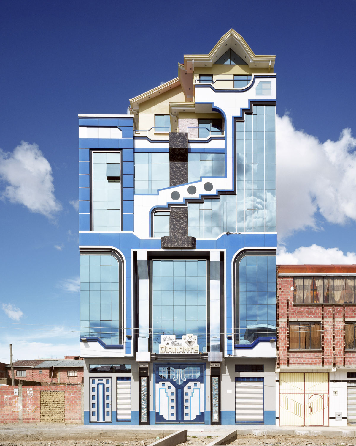 Mamani was born in the small mountain village of Catavi, and got his start as a builder. Now an architect, he is largely self-taught. “We are part of a generation who started at adobe houses and ended up in Andean palaces,” he proclaimed during a recent architecture symposium at the Metropolitan Museum of Art. His designs pay homage to indigenous Andean culture, but they are also status symbols. Called “Andean versions of the suburban McMansion” by the New York Times in 2013, the “palaces” are commissioned by the inequitable city’s upper class. Regardless, they have become firmly ingrained and celebrated in the city’s wider culture.