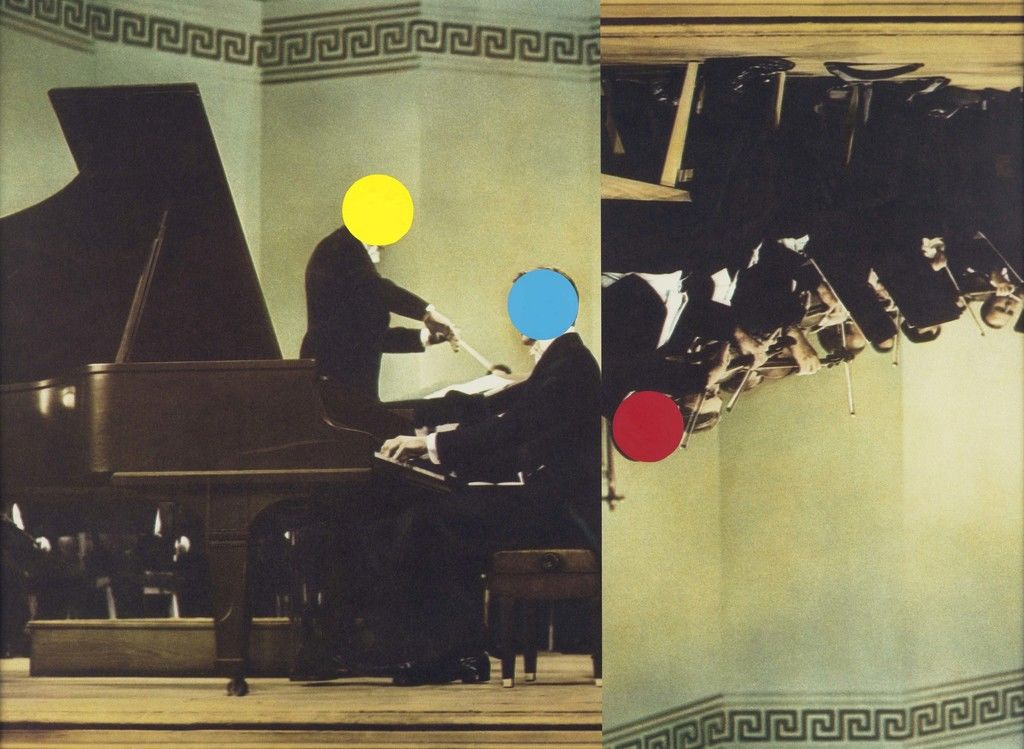 Baldessari returned to bright colors and a more painterly sensibility in the late 1980s. In the ensuing decades he created many works based on found photographs where certain details or entire sections of the image were covered in uniform blocks of color. He also continued to create paintings mixing text and found imagery. His 2017 solo show at Sprüth Magers in Los Angeles focused on that quintessentially contemporary fusion of text and image—emoji. Explaining the genesis of the series, he told the Los Angeles Times: “How can you not be interested in emojis? They just look so stupid!” (In March, Sprüth Magers will open a solo show of new works by Baldessari at its Los Angeles space.)