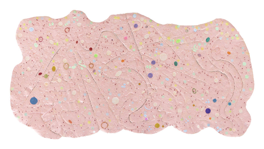 Pindell knows all about piecing together intricate narratives beyond what might seem obvious. Over the course of her career—Pindell is now 76—she has created works that are rich in material and rooted in detailed narratives. Like the students she teaches, Pindell was trained in figurative painting, yet her most recognized pieces are mixed-media paintings on handmade paper featuring hole-punched dots, layered grids, and layered surfaces that introduce light and shadow.