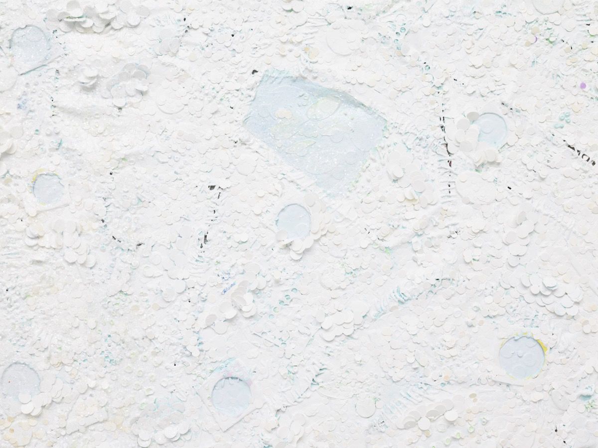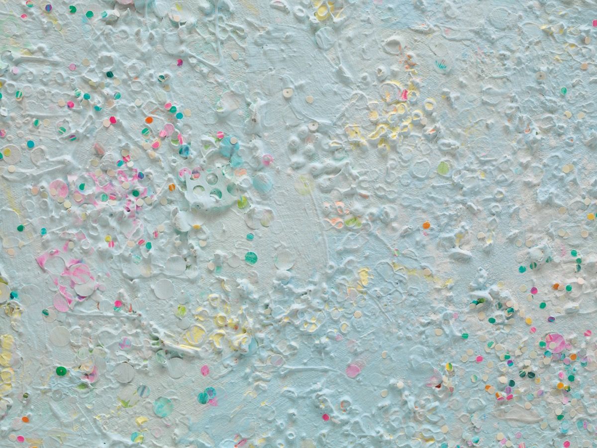There’s an emphasis on depth in all of Pindell’s art, including the pieces she is working on today. She told me that this approach is experiential but also closely linked to the materials: foam encased in jade glue; treated canvas; textured paper; and fruit and vegetable papyrus.