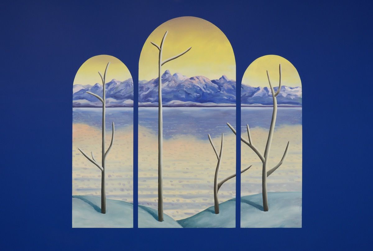 Party’s 2017 show at the Hirshhorn Museum and Sculpture Garden wasn’t inspired by art history at all, but rather by U.S. president Barack Obama’s reassuring words on the night of the 2016 presidential election: “No matter what happens, the sun will rise in the morning.” Ruminating on the theme of sunsets, Party painted the circular, glass-walled gallery on the museum’s third floor with setting or rising suns, drawing on the work of art-historical figures like Caspar David Friedrich, Georgia O’Keeffe, and Vallotton.