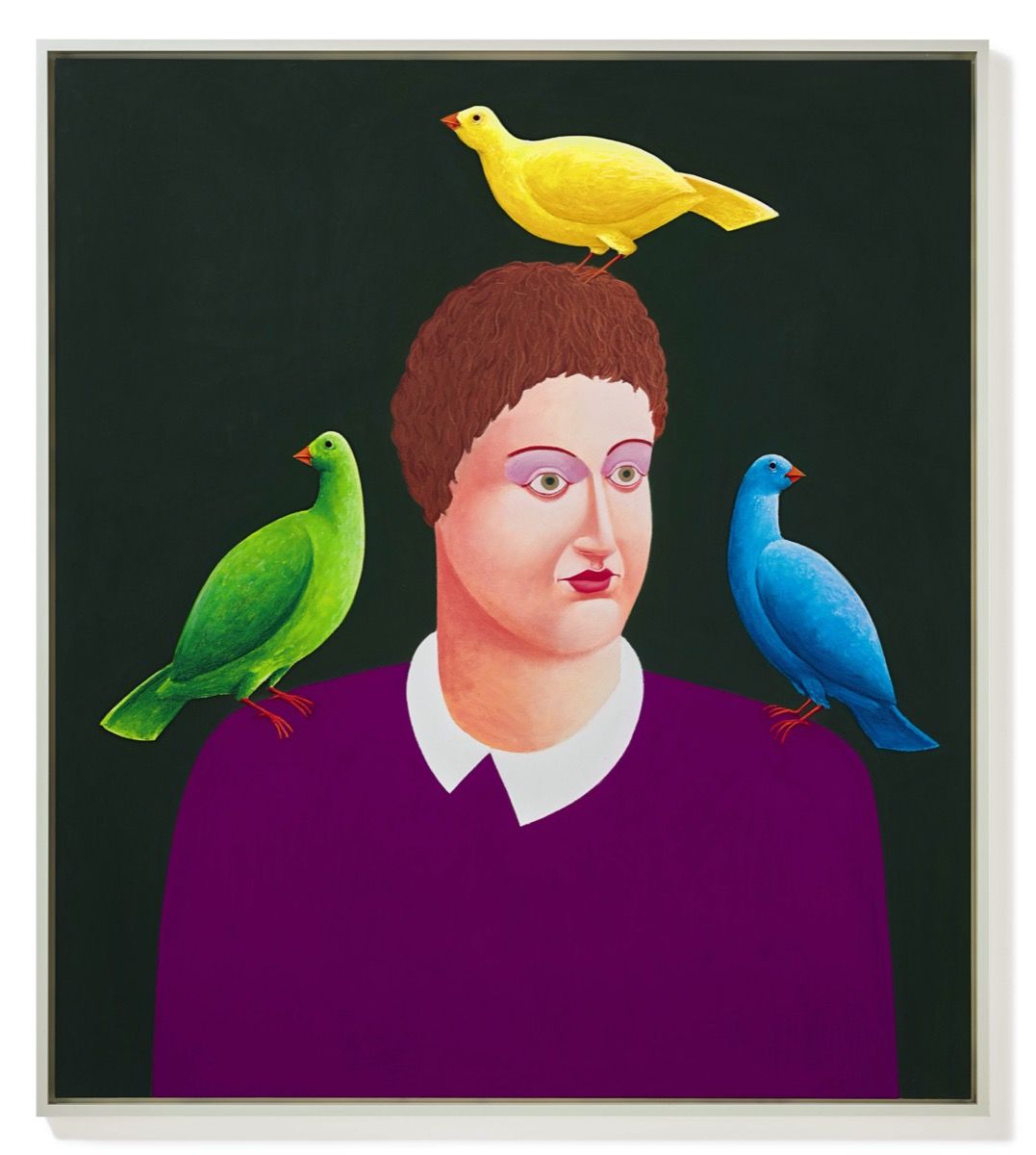 Party combines these sets with sculptures and canvases of wide-eyed, colorful, cartoonishly stoic characters. “The androgynous and often sensual nature of his figures and bold use of colors sets him apart,” his longtime dealer Xavier Hufkens said. “You can tell he is enjoying himself.”