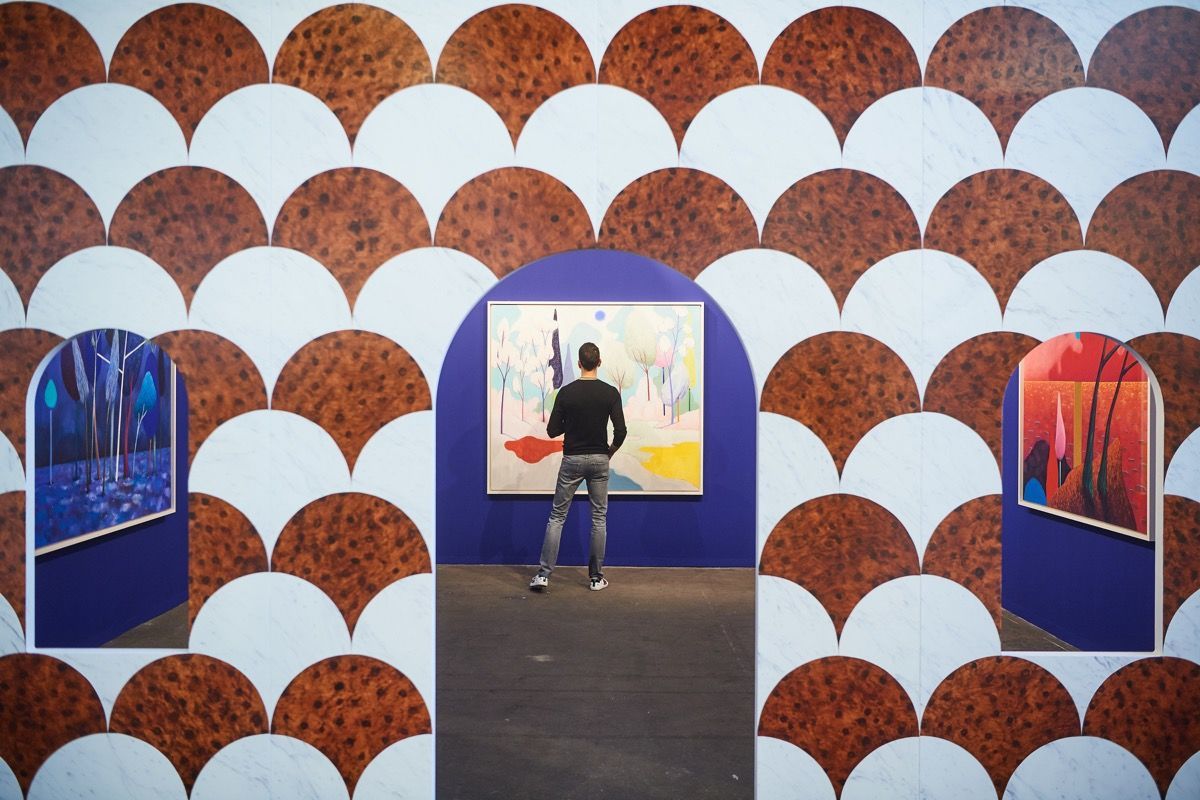 Party’s prices on the primary market have also jumped higher and higher as his recognition among collectors has grown. His 2018 installation in the Xavier Hufkens booth at Art Brussels—which took the form of a small chapel to showcase his brightly colored landscapes—was a resounding success, with all three featured works selling for figures between €50,000 and €80,000 ($61,000–$98,000). Just a year and a half later, Hauser & Wirth sold a similar pastel work by Party for $385,000 at Art Basel in Miami Beach.